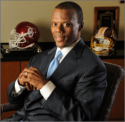 wattsx Published January 7, 2015 at 245 × 240 in Sooner Quarterback Stands Ground in New Arena Next → He was raised by J.C. Watts Sr., a Baptist minister, now 71, and his mother, Helen, who died last year. The fifth of six children, J.C. was a likable, quiet youngster with a penchant for hard work, his father said.