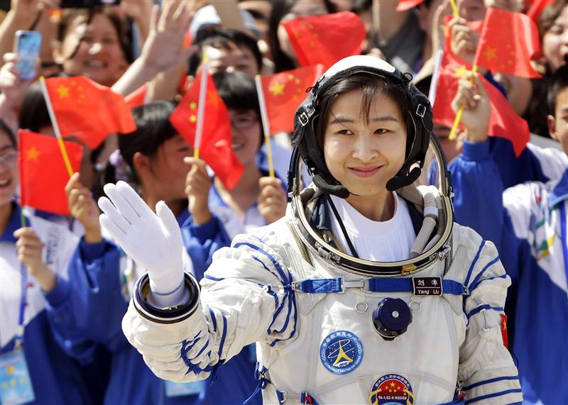 Liu Yang, China’s first female astronaut, waves during a departure ceremony at Jiuquan Satellite Launch Center, Gansu province, June 16, 2012. China will send its first woman into outer space this week, prompting a surge of national pride as the rising power takes its latest step towards putting a space station in orbit within the decade. Liu, a 33-year-old fighter pilot, will join two other astronauts aboard the Shenzhou 9 spacecraft when it lifts off from a remote Gobi Desert launch site on Saturday evening. REUTERS/Jason Lee
