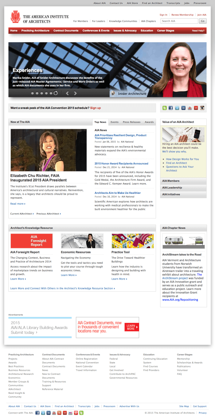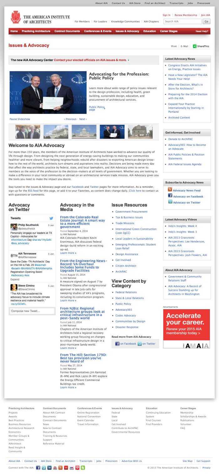 - Worked with the advocacy team at the AIA to determine content opportunities and procedures for their new page.