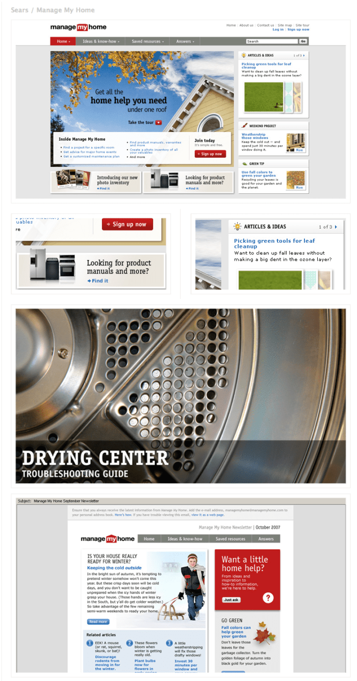 - Worked with outside agency, Think Inc., to improve content opportunities and content display on ManageMyHome site. Developed process and schedule for display of new content and hired team of new editors and writers to build out site for Sears.